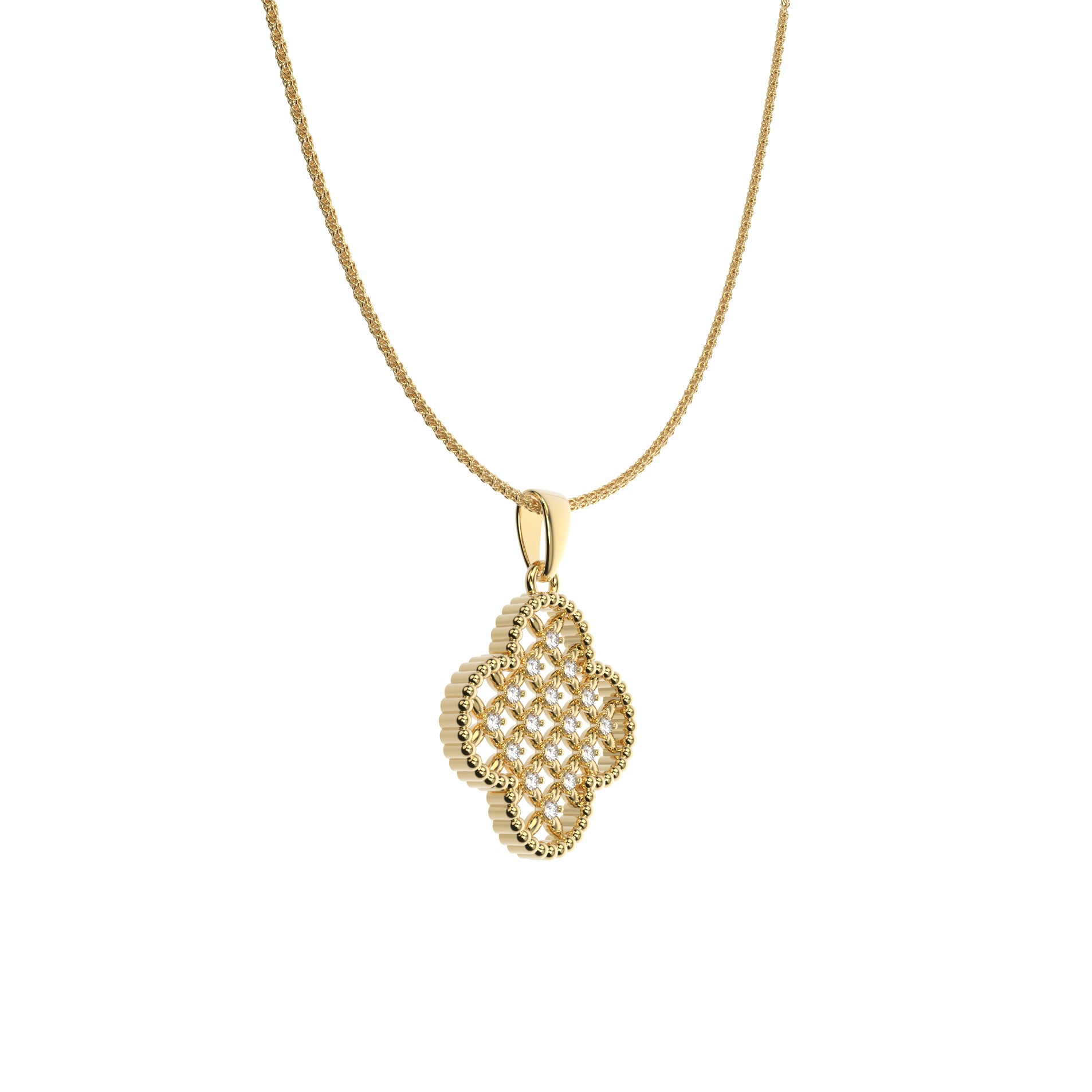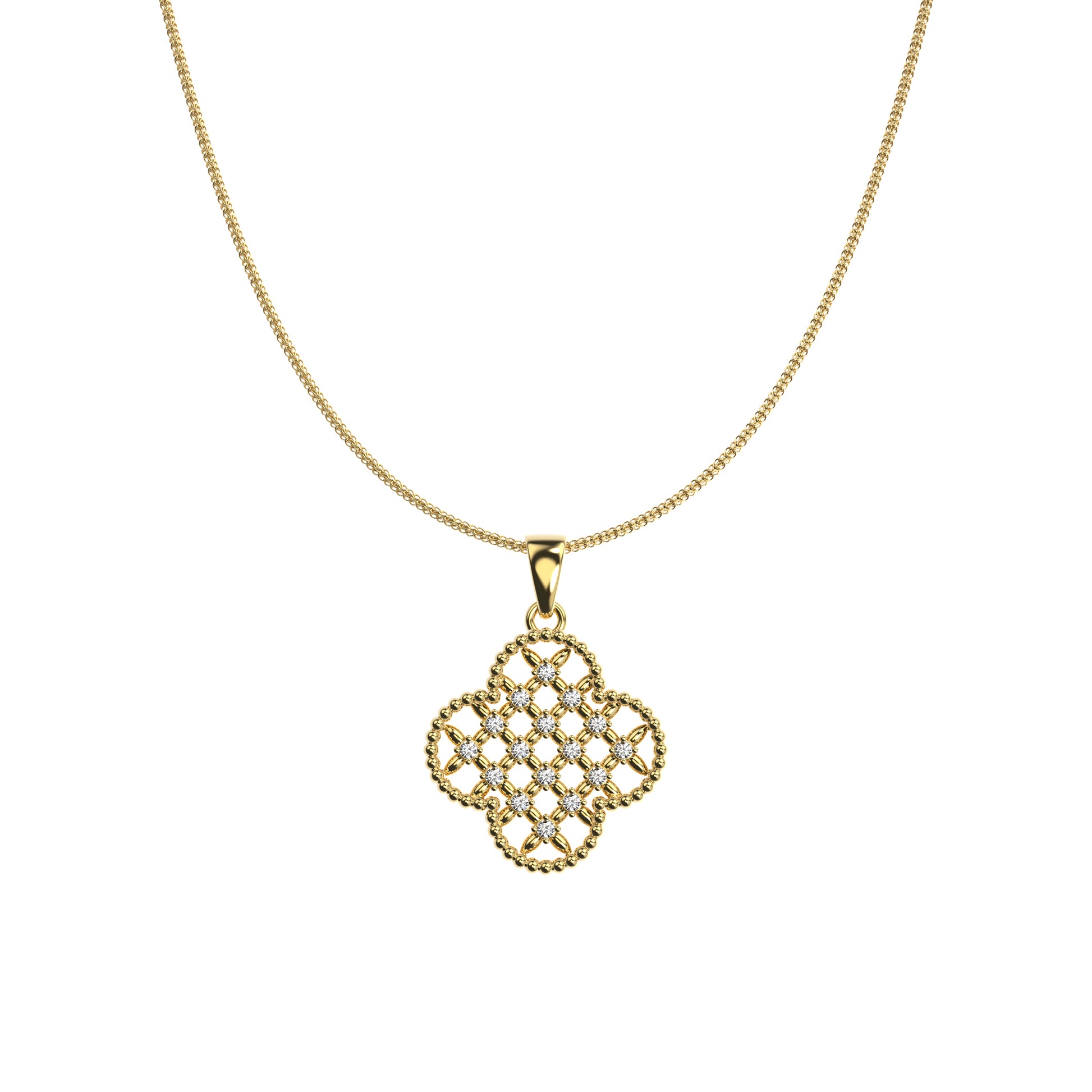 שרשרת תלתן זהב 14 קראט בשיבוץ יהלומים